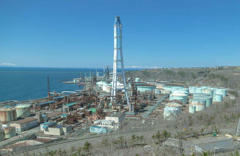 1972年に始まった埋立工事により陣屋海岸は工場地区に変わりました。湾曲する道路は当時の海岸線の面影を残し、当時の写真に写る隧道は今も静かに現存しています。(埋め立てられ工場地区に変わった陣屋海岸)