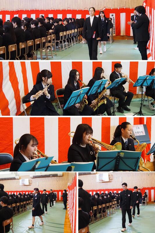 吹奏楽局による生演奏と大きな拍手の中、卒業生が入場します。