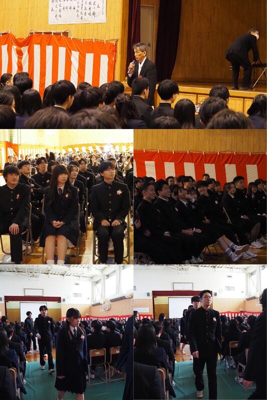 令和6年度終業式を本校体育館でおこないました。校長講話をはじめ、生徒部、指導部から春休中の心得や新年度に向けて進路の心構えが話されました。
