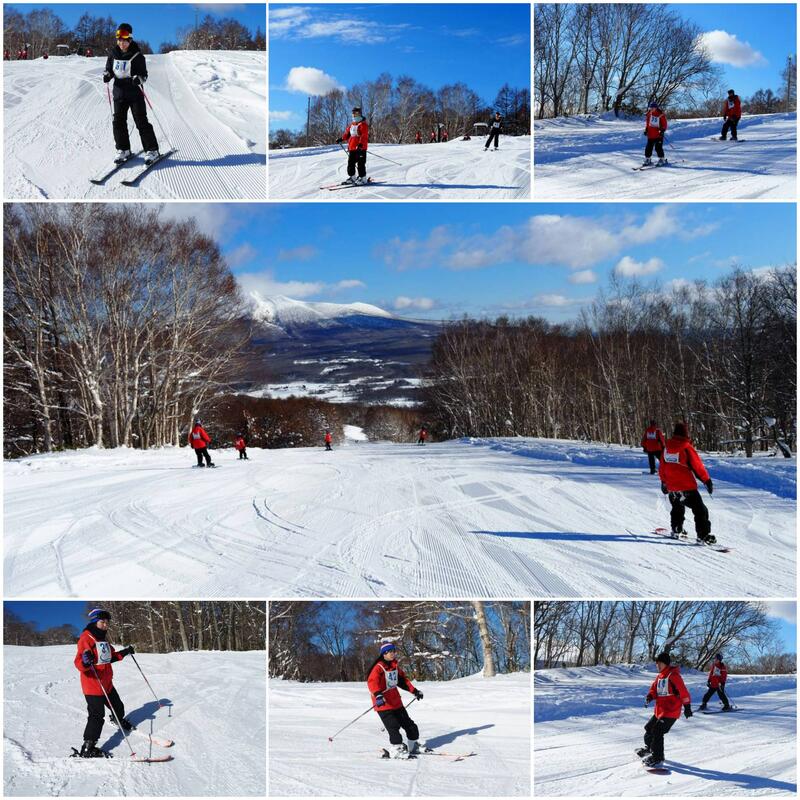 いよいよ最終日。天気に恵まれ、気持ちよいスキー・スノボ日和となりました。3名以上の仲間と一緒に9時から11時まで、2時間の自由滑走です。2日間インストラクターさんに指導していただいたおかげで、初心者でも、自分の力で滑って下りて来られるようになりました。上級者・中級者は、初心者のことを助けながら、気遣っている様子が見られました。