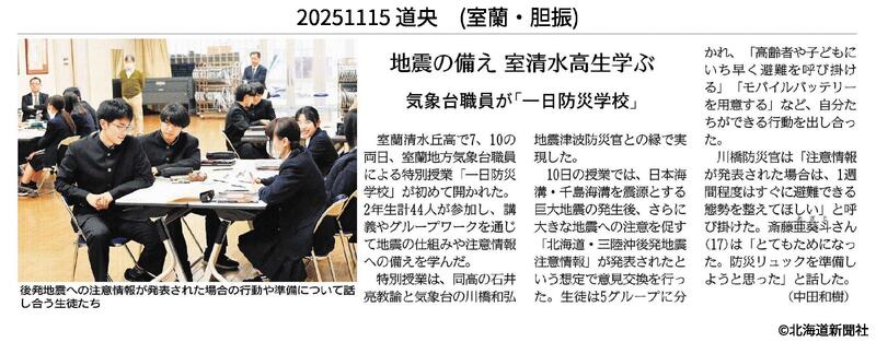 令和7年11月15日(土)の北海道新聞に、掲載していただきました。北海道新聞社提供(令和7年11月15日掲載)