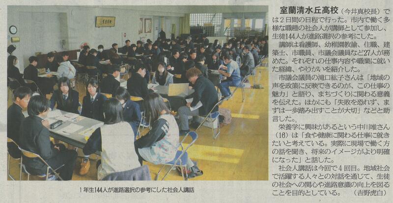 令和7年11月3日(月)の室蘭民報に、社会人講話の記事を掲載していただきました。室蘭民報社提供(令和7年11月3日掲載)