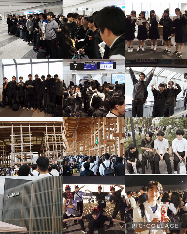 2年次一行は室蘭を出発し、新千歳空港から伊丹空港へ。チェックインから搭乗までスムーズで、「飛行機にスムーズに乗れた」「機内では静かに過ごせた」という声が多く、初フライトの生徒は目を輝かせていました。