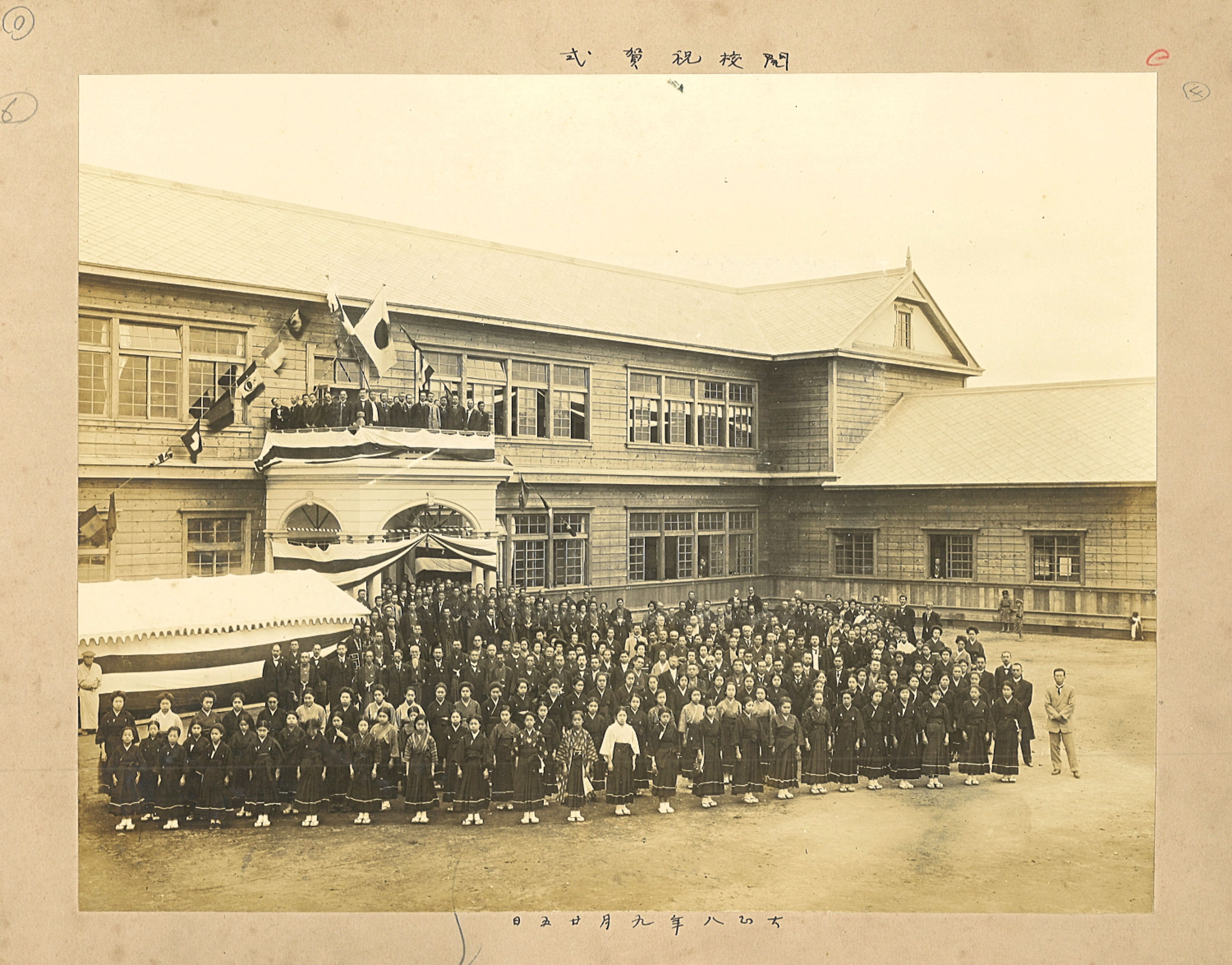 本校開校記念式典並びに新校舎落成式を挙行し、以後本日を以て開校記念日とする