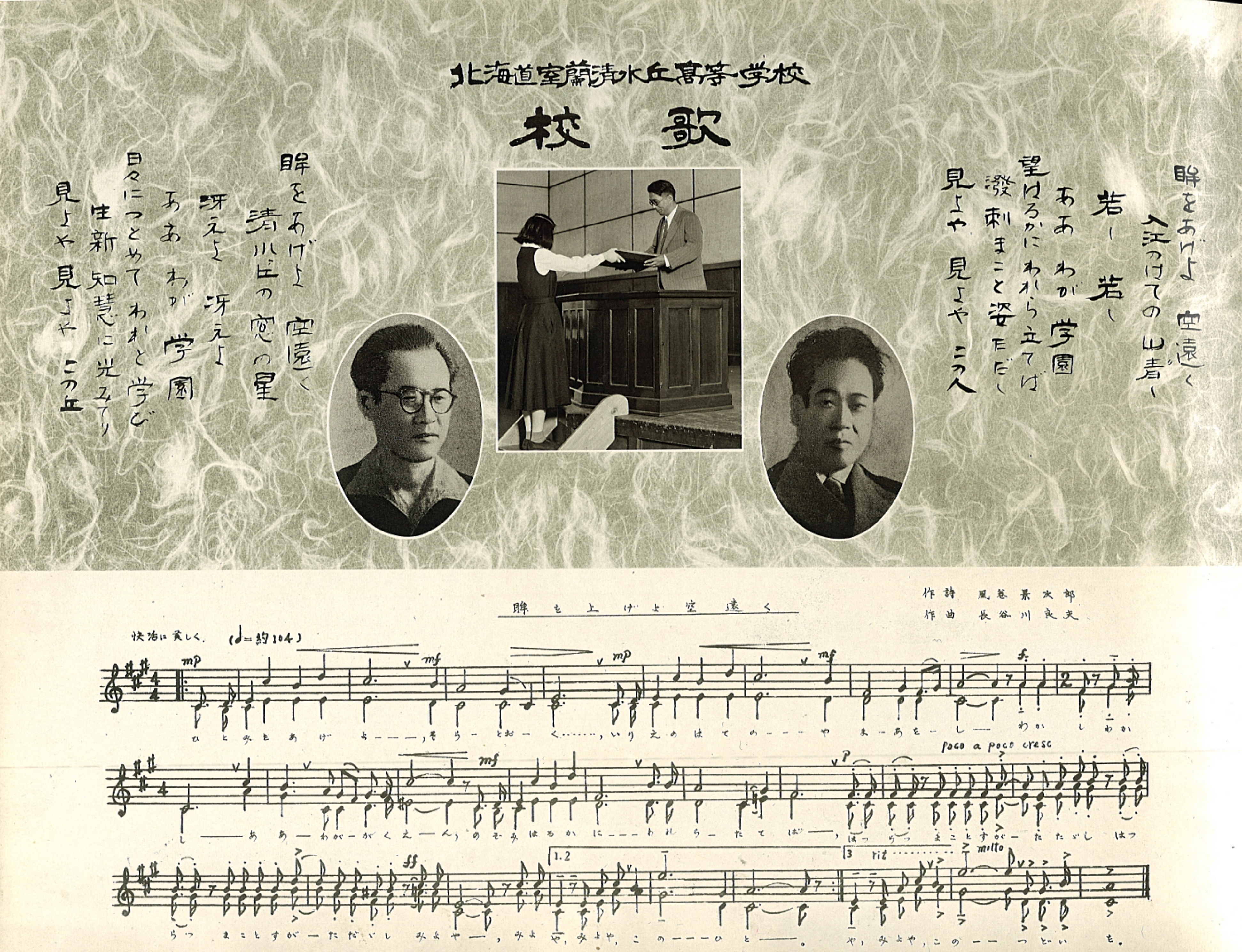 校歌制定(作詞:風巻景次郎 氏 作曲:長谷川良夫 氏)