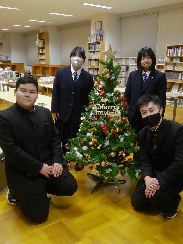 少しでも、あたたかい雰囲気でゆっくりして欲しいという想いをこめて、図書局員がクリスマスツリーを飾りました。冬休み前長期貸出期間中ですので、ぜひ、気軽に図書室に来てください。